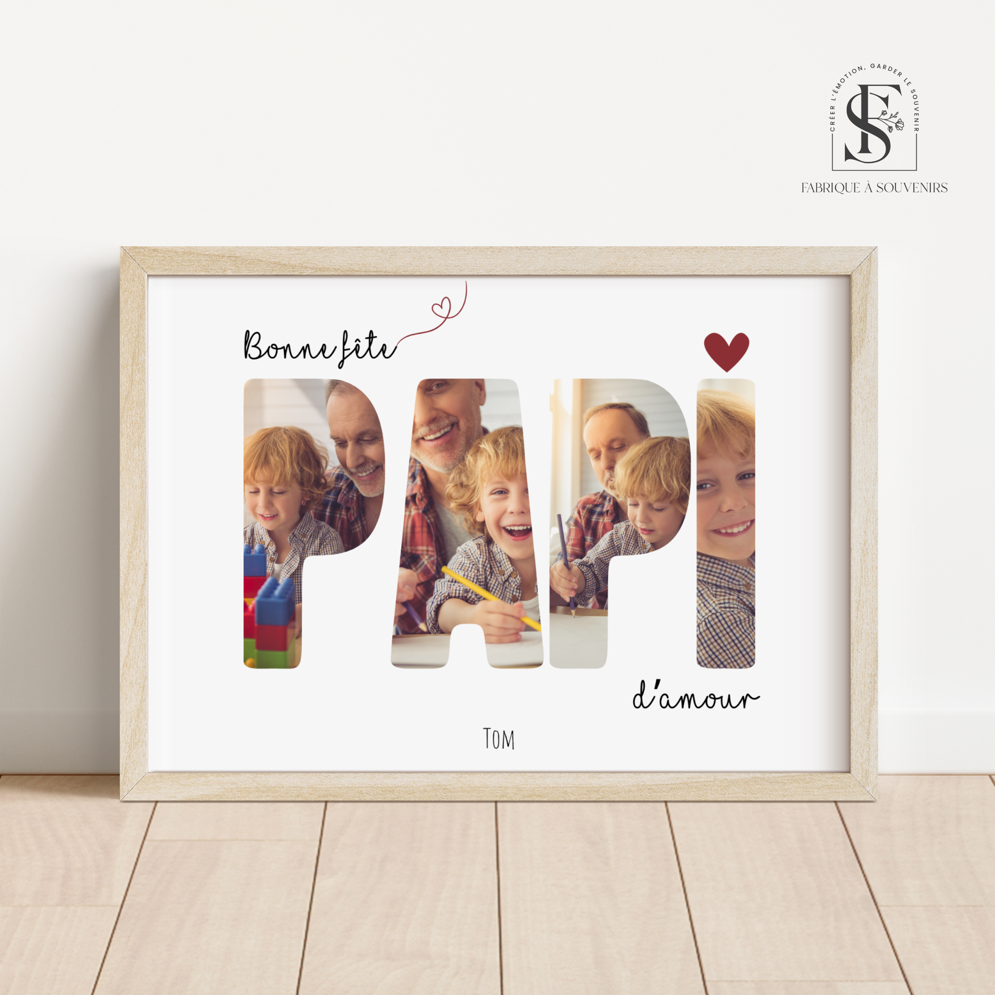 Créez une affiche chargée d'amour pour un papi exceptionnel ! Chaque lettre est remplie d'une photo de votre choix, accompagnée d'un message de tendresse. Une façon originale et touchante de lui montrer à quel point il est important dans votre vie.
